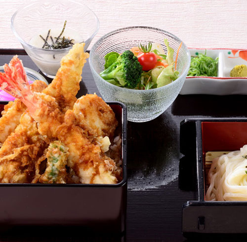 うどんも天ぷらもご飯も!盛りだくさんな御膳をどうぞ。