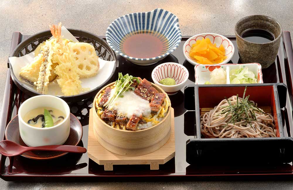 うなぎわっぱ・小ざるうどん・天盛り・茶碗蒸し・漬物付
